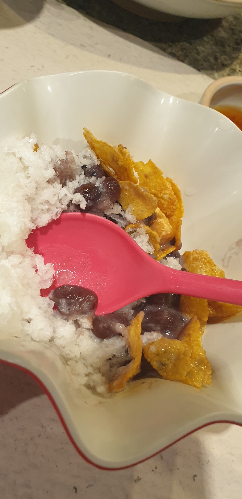 저 무침도 맛있었고 육회도 맛있었다. 후식팥빙수도 준다.