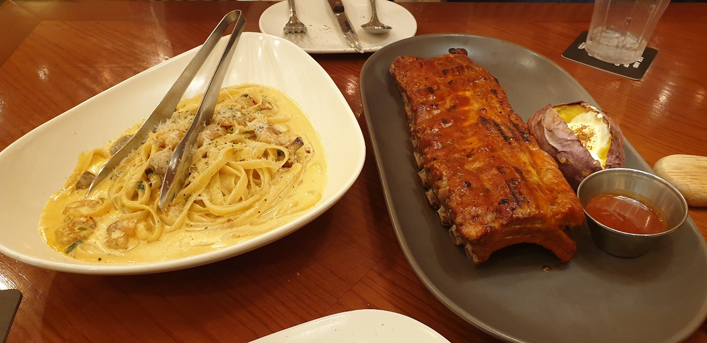 투움바파스타와 빽립. 할인이 들어갈때 돈주고 먹을만하다. 아니면 좀 아깝다.
