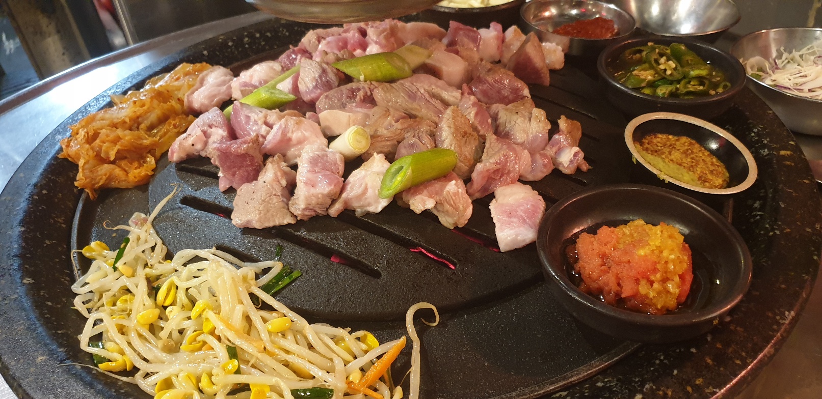 동네에서 자주가는 고기집. 3인분은 시켜야 명란젓이 같이 나온다. 기본 젓갈류는 2개가 나온다.
