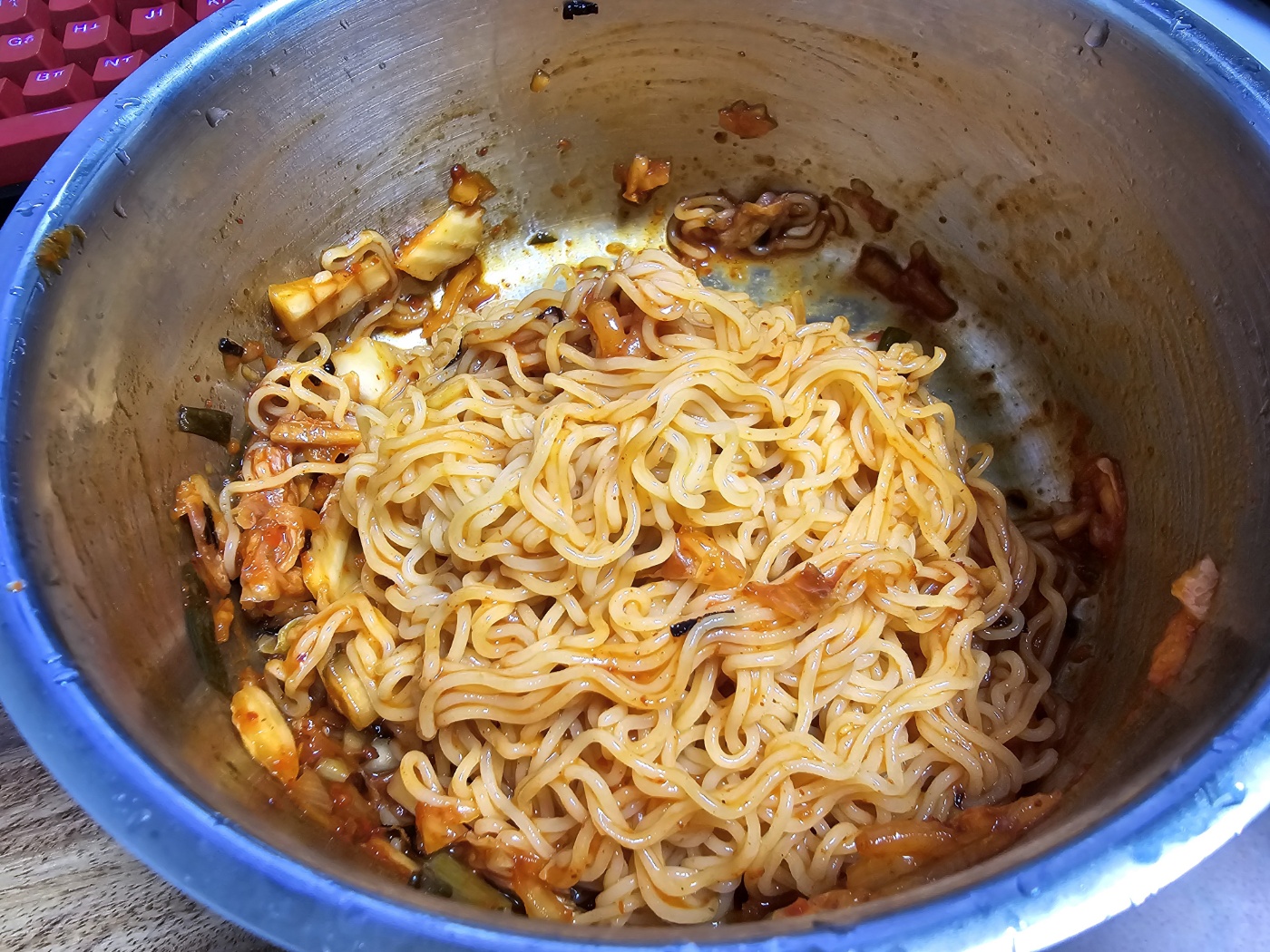 밤에 너무 배가고파서 비빔면 한개를 끓여먹었다. 약간의 김치를 넣어 먹으니 맛이 약간 달라지면서 비빔국수같아졌다.