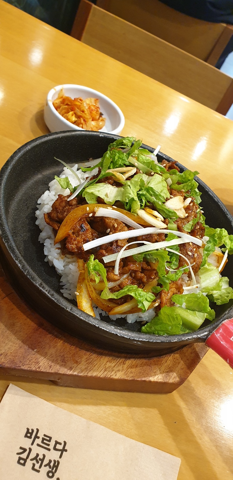 빨간양념의 맛이 아니라 간장의 맛이 더 강했던 탓일까. 지글지글끓는 수준으로 먹었던 철판제육이 아니여서 일까.