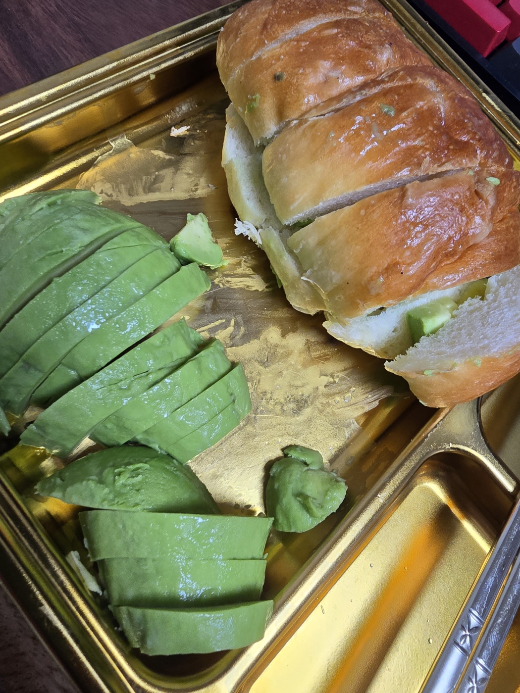 야식으로 먹은 소금빵에 아보카도를 넣어서 먹었다.
