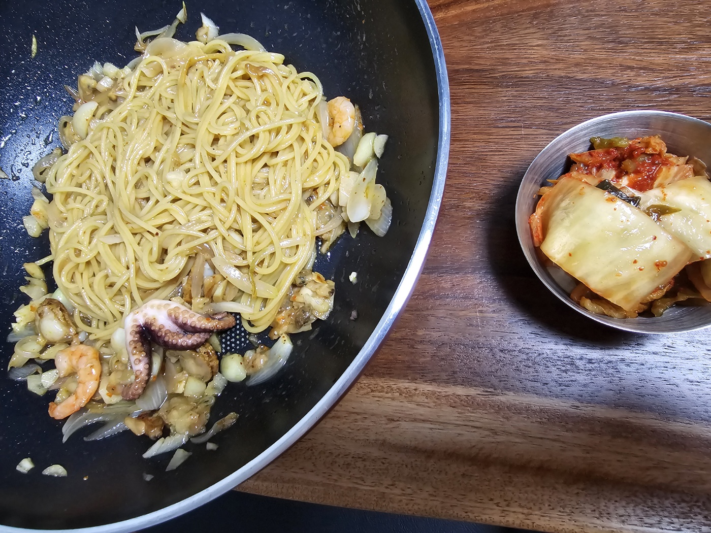 오일파스타. 집에 베이컨이없어서 까르보나라를 해먹고싶었는데 못했다.