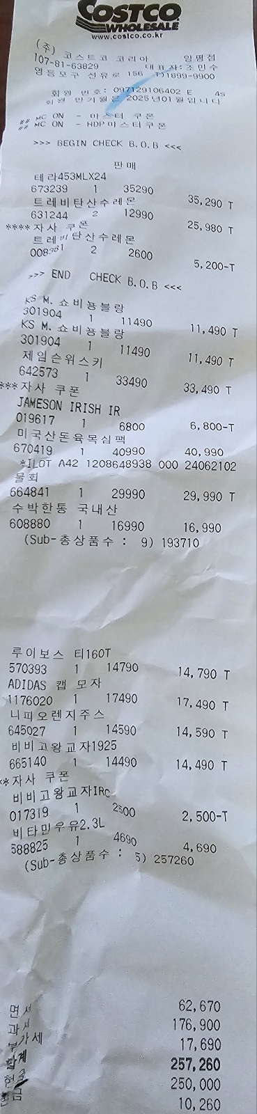코스트코에서 장본 것들. 먹어보고싶었던 양주와 와인. 유명하다고해서 사봤다.