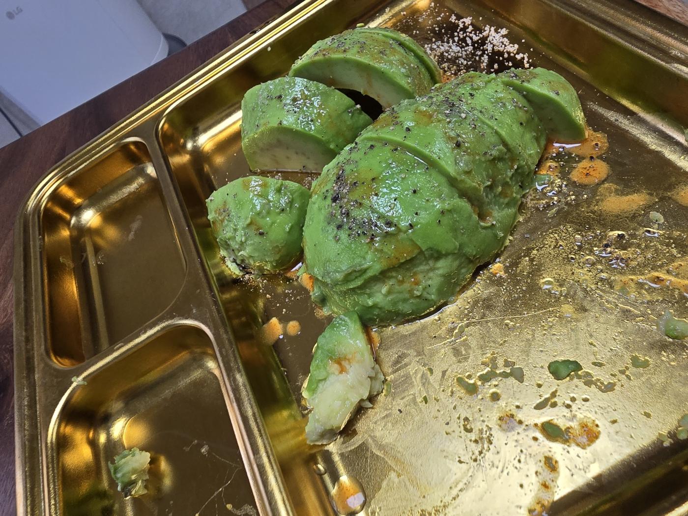 코스트코에서 사온 아보카도가 상하기 직전이라서 빨리 먹어치웠다. 핫소스와 약간의 소금을 뿌려서 먹으니 더 맛있었다.