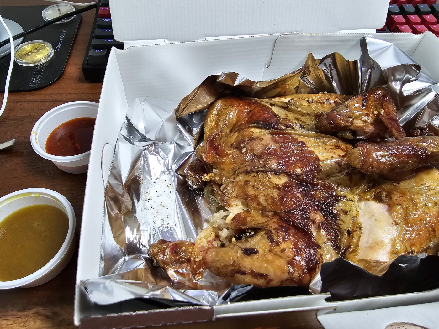 술병나서 몸이 안좋아 김종용누룽지통닭을 포장해서 먹었다. 포장하면 2천원 할인인데 할인쿠폰1천원권을 준다.