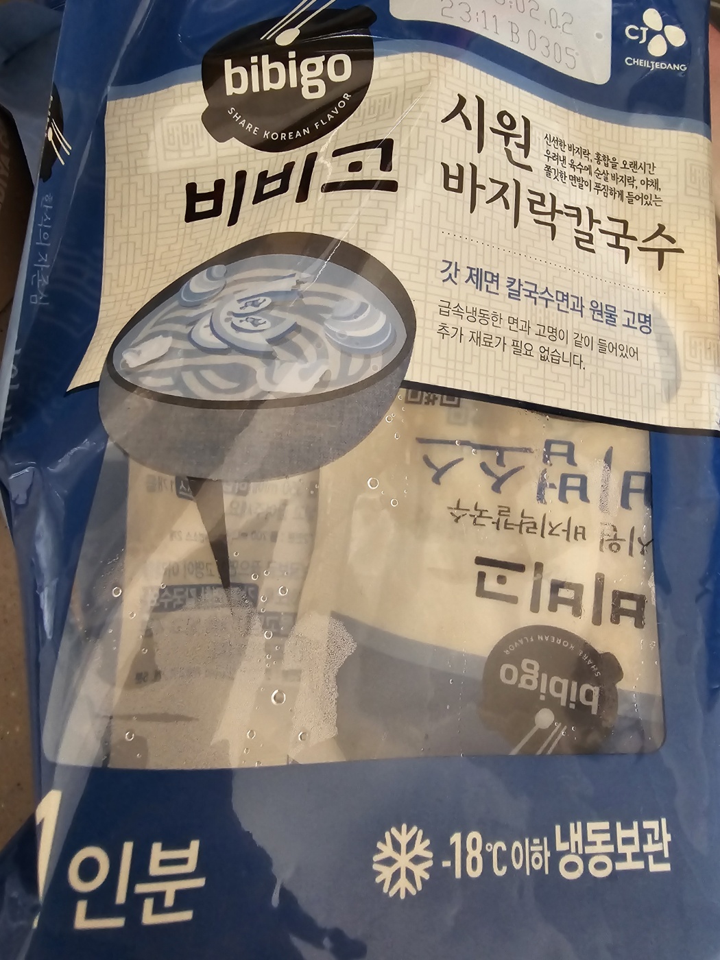 비비고 바지락칼국수. 맛이 조개구이집에서 먹는 바지락칼국수 맛이였다.