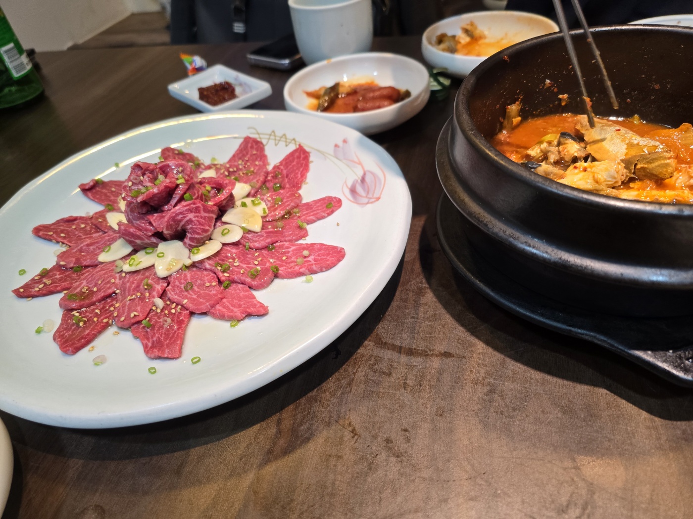 메뉴는 불낙전골, 육사시미, 묵은지고등어? 이다.