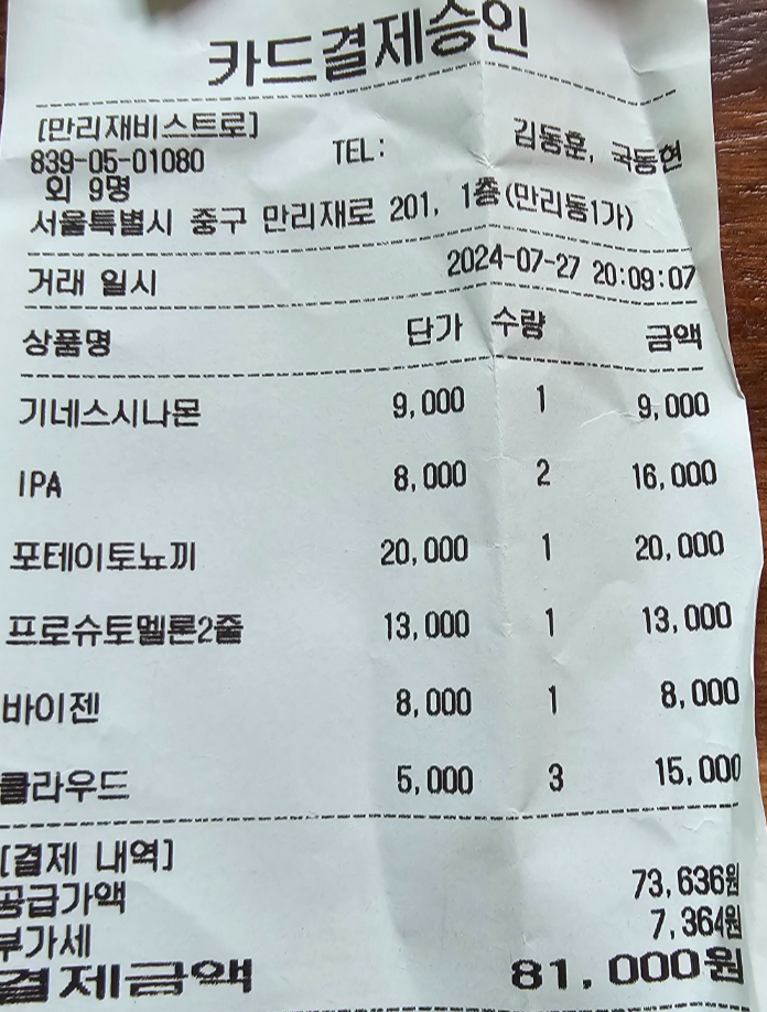 무난하게 맥주 먹을만한 곳인거같다. 바로 옆집을 갈려했는데 자리가없어서 못가고 여기로 왔다.