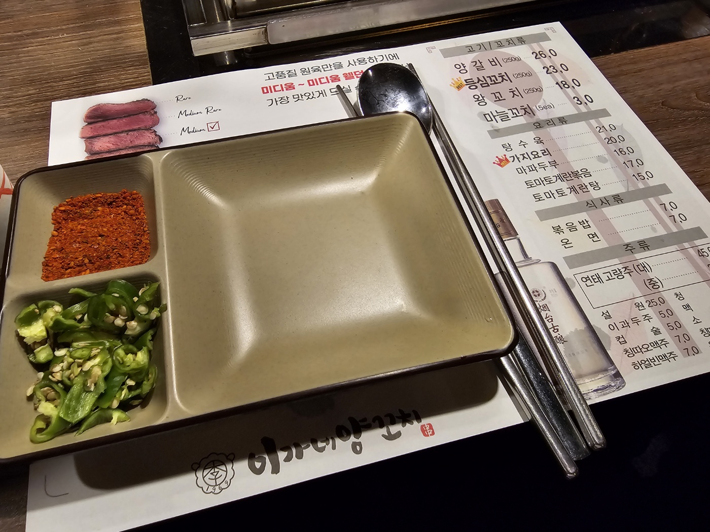 양갈비가 26,000원이다. 현재는 오픈기념으로 23,000원에 3000원 할인해서 판매하고있다.