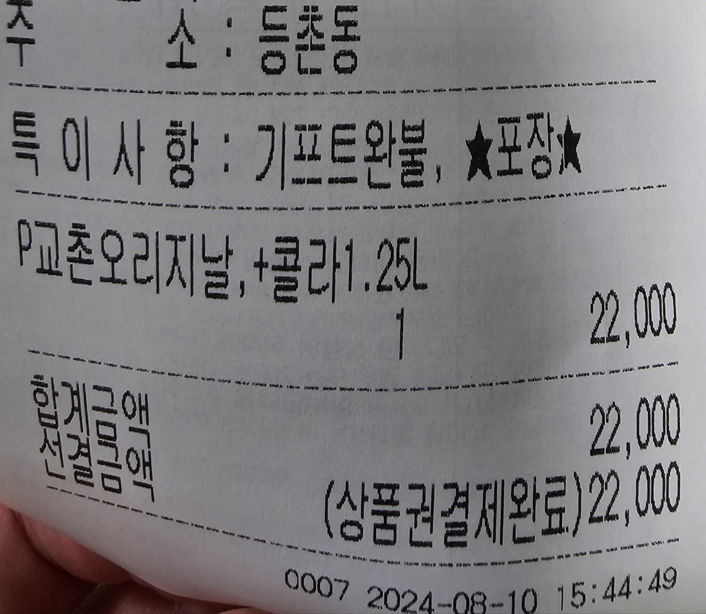 전화주문을 했고 쿠폰 바코드번호를 알려달라고한다. 알려주면 처리가 완료되고 15분뒤에 픽업하러 갔다.