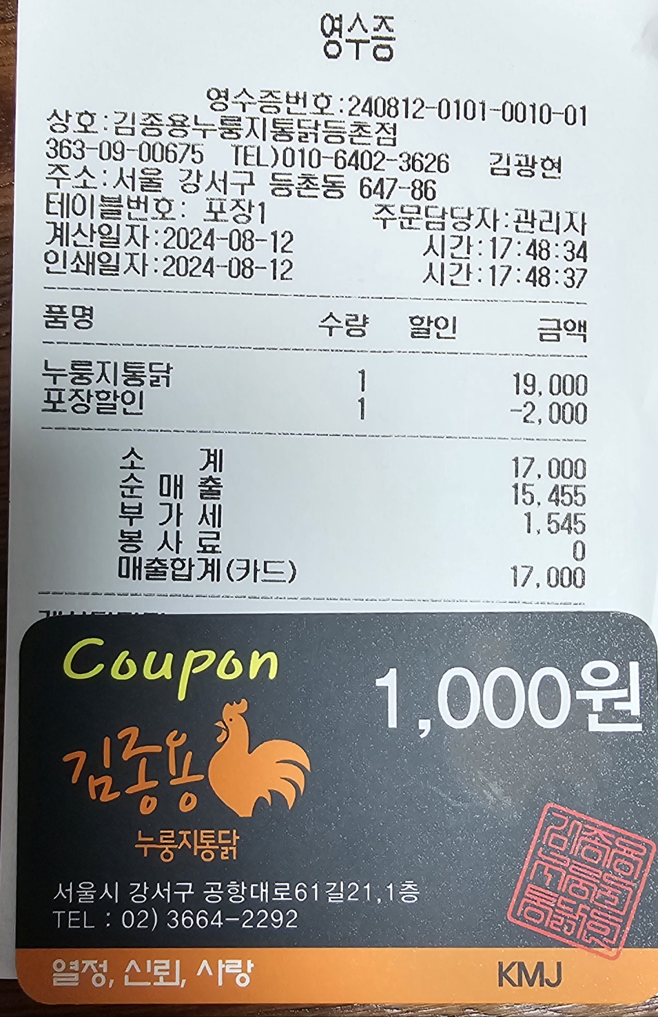 김종용 누룽지통닭방문날짜 : 2024.05.15 위치 : 등촌역 재방문 의사 : 있음 이 일대 최고 인기집인거같다. 웨이팅도 있던데..일단 아는 맛이다. 그렇지만 맛있다. 셋이서 먹었는데 2마리는 좀