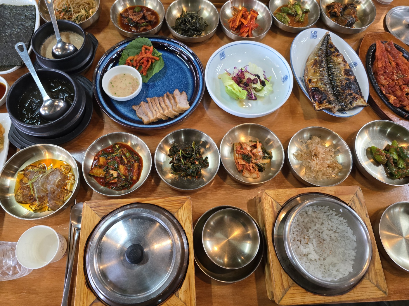 사진상 전이랑 김이 잘안찍혔는데 반찬 가지수가 20가지정도 되었다.