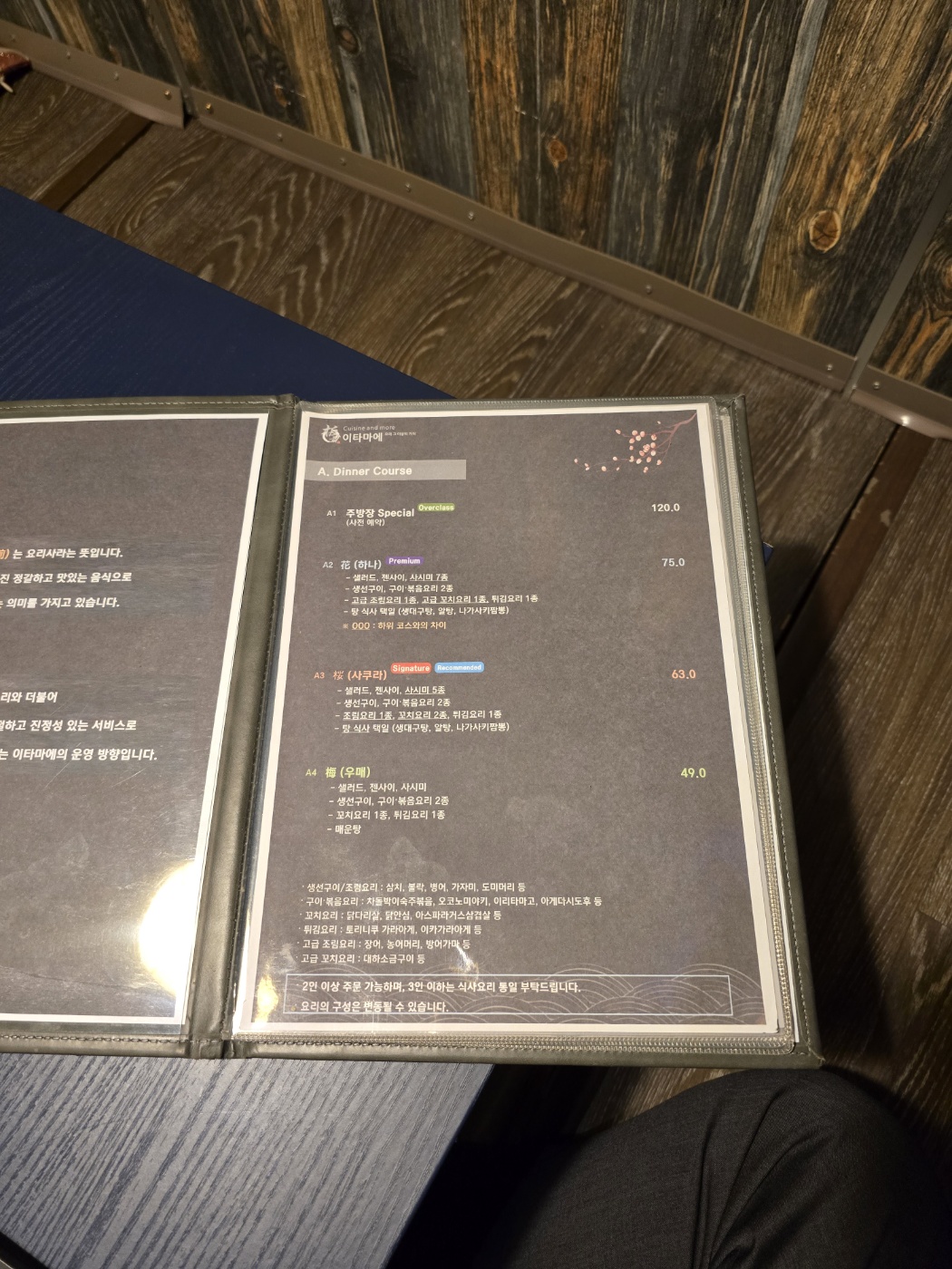7만5천원짜리 코스를 먹었다.