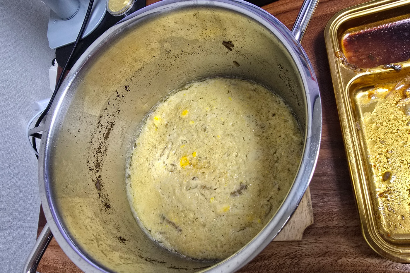 저렇게 먹어도 배가 좀 고파서 남은 국물에 계란 3개를 넣어서 계란찜을 만들었다.