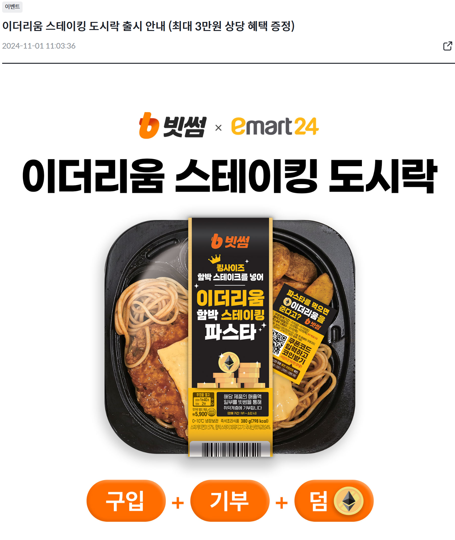 이번에 이더리움 스테이킹 도시락을 출시했다는 이벤트를 봤다.
