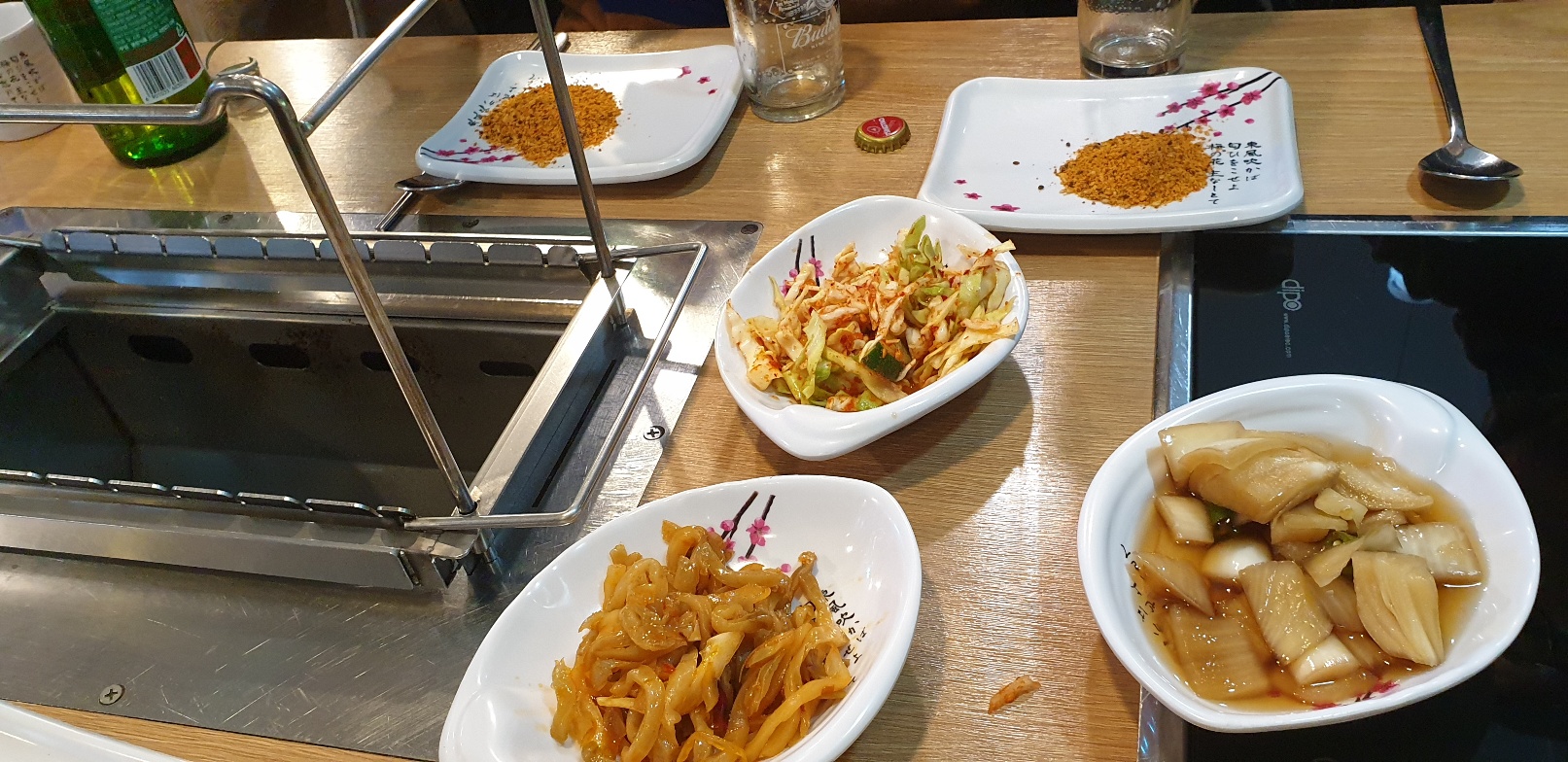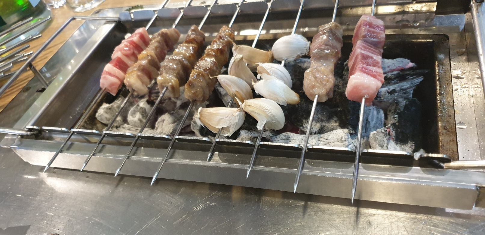마늘은 서비스로 주셨다. 직접 껴서 먹었다. 세로로 껴야지 끝부분이 안탄다고 팁을 알려주셨다.