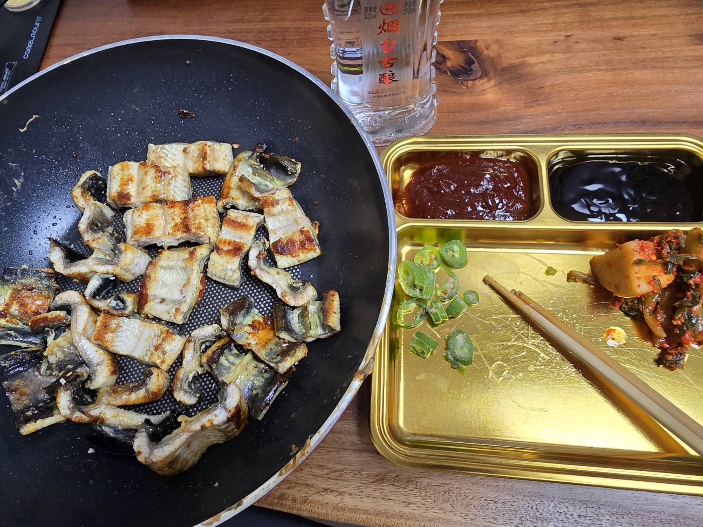 금요일 저녁에 구워먹은 것이여서 고량주랑 함께먹었다.