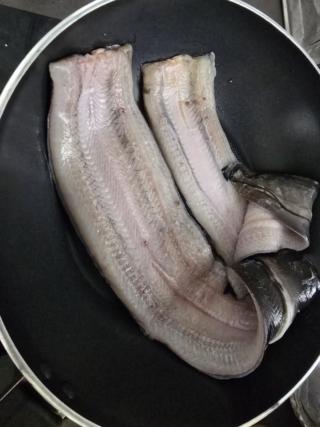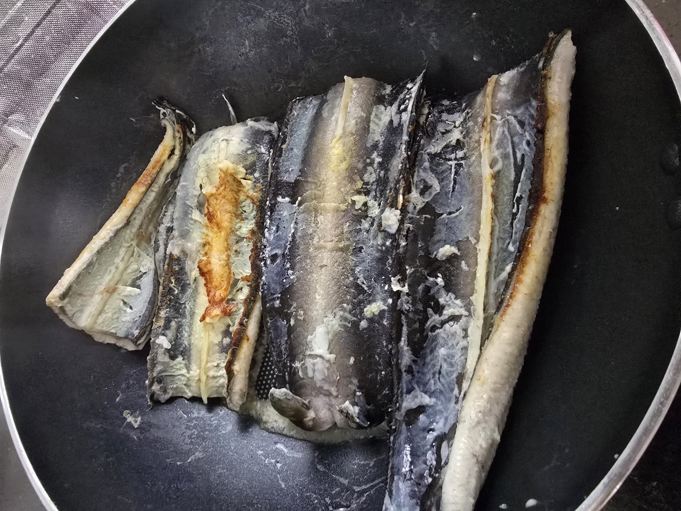 생각보다 비린내도 안났다. 더 바짝구웠어야했는데 그부분이 살짝 아쉬웠다. 가운데 심?이 살짝 느껴졌다.