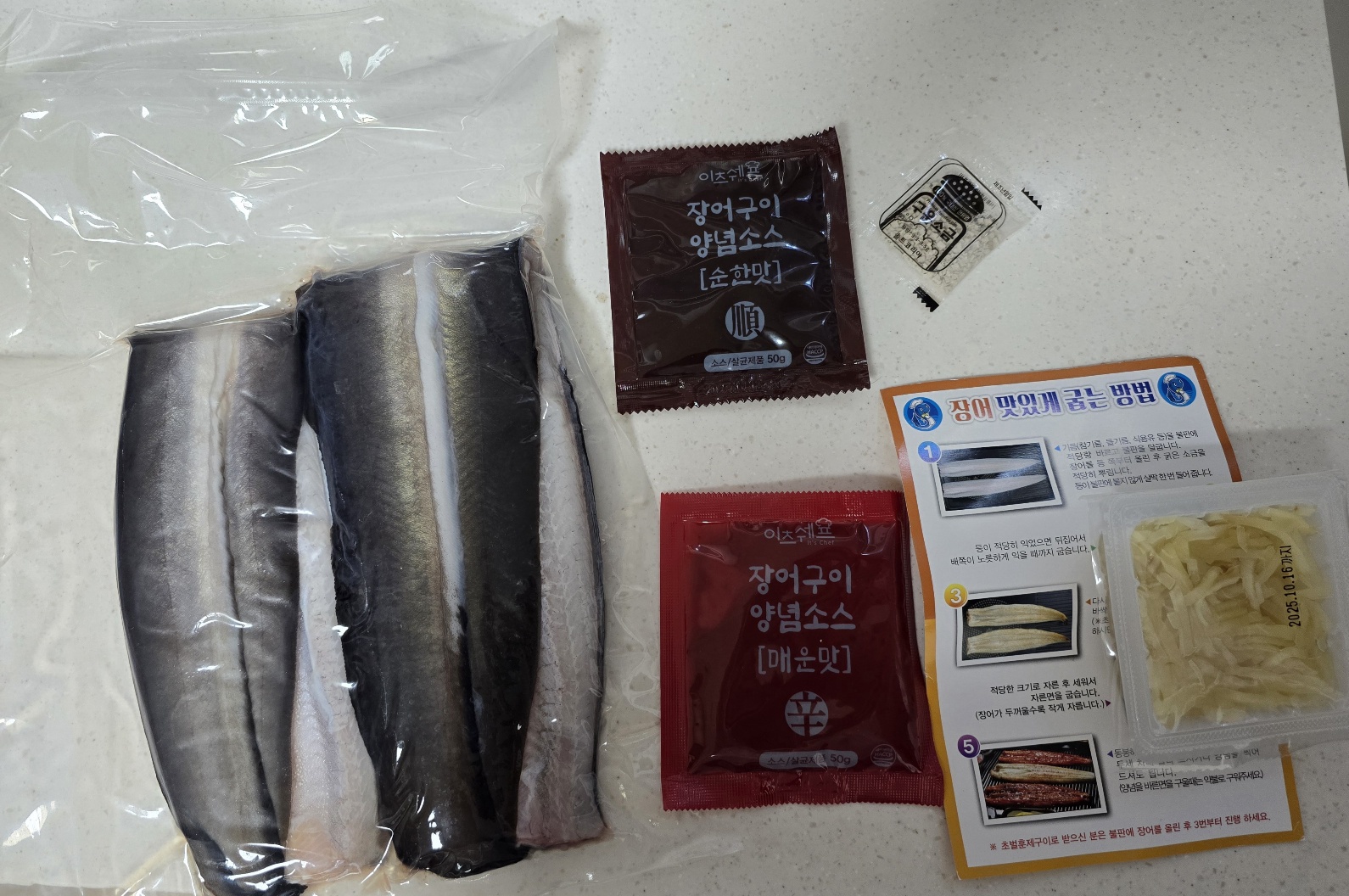 양념소스 2종과 생강 소금이 들어있었다. 나는 장어먹을때 생강은 잘안먹어서 개봉조차 안했다.