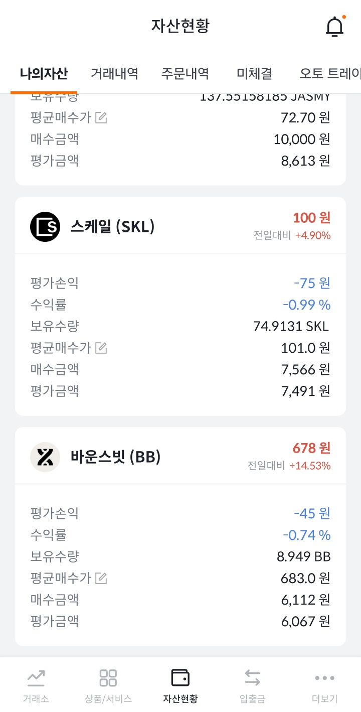 스케일SKL 바운스빗BB 둘다 5천원 이상이 들어와서 그냥 매도만해도 가능했다.