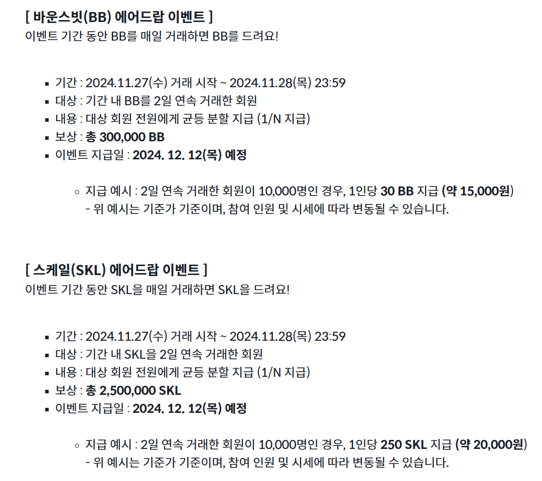 바운스빗과 스케일 에어드랍 이벤트가 있었다.