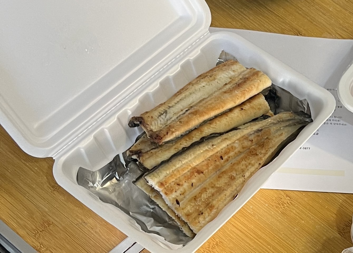 초벌이 되어있기때문에 먹기는 편했다. 캠핑가서 소고기와 장어를 같이 먹었는데