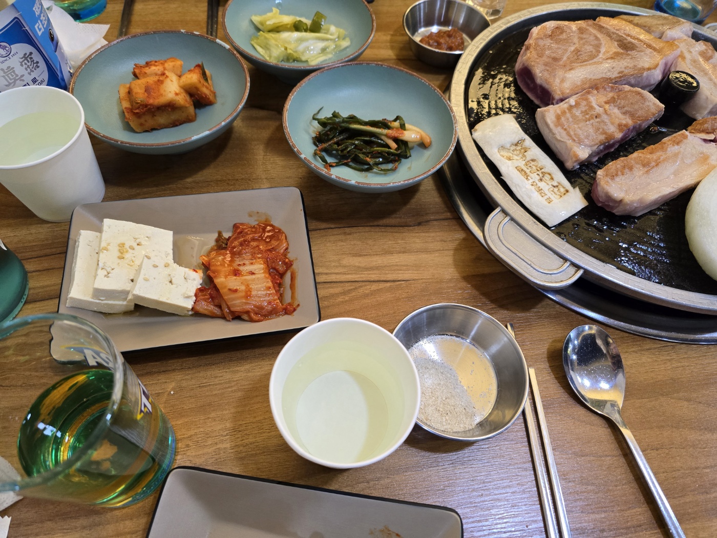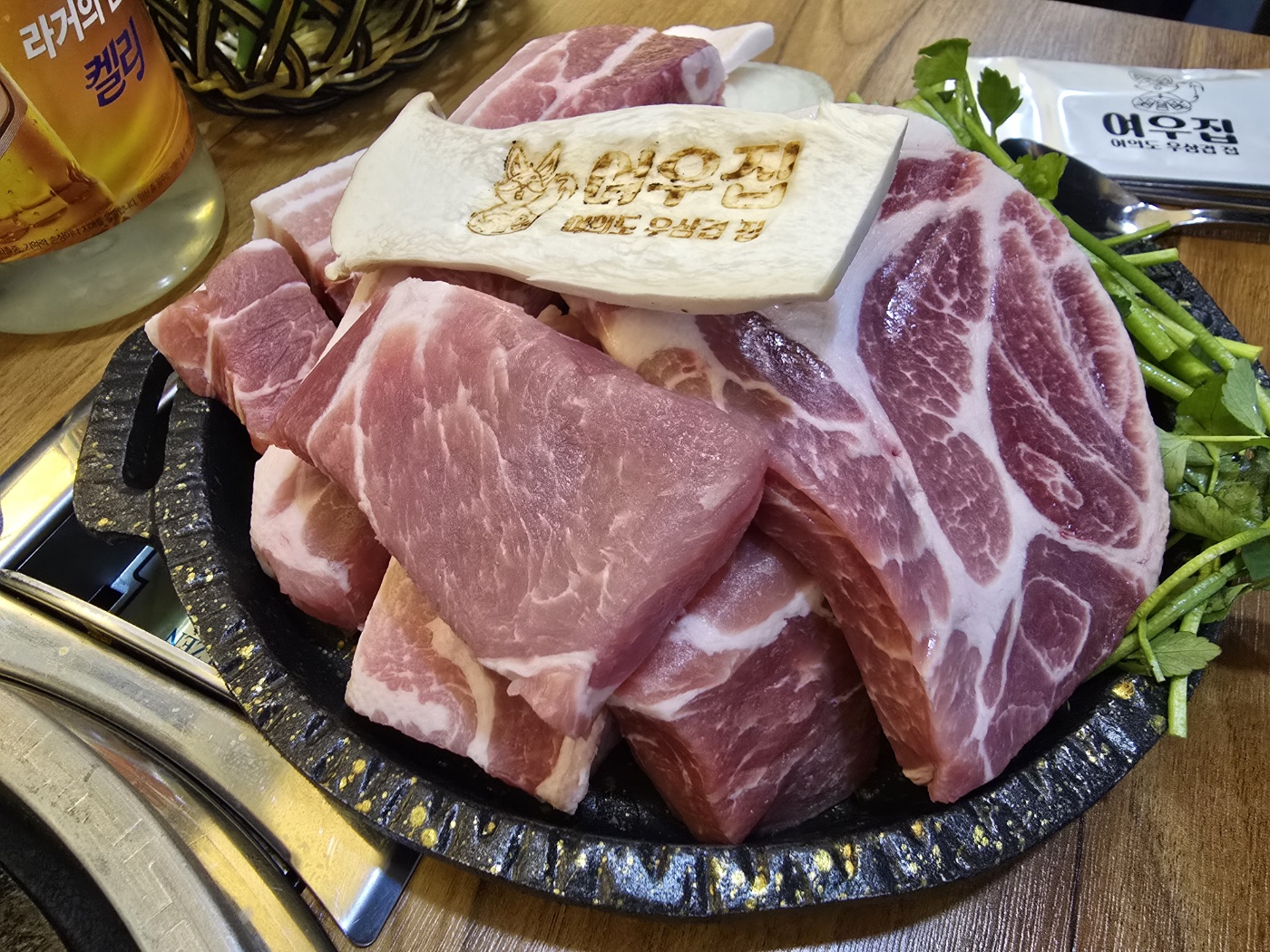 우리는 3인세트를 먹었고 목살, 삼겹살 그리고 된장술밥이 포함된 메뉴이다.