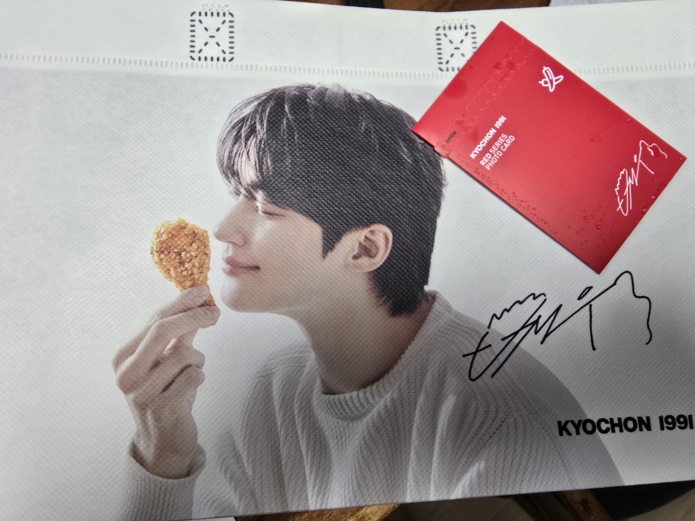 변우석이 그려져있는 재사용 가방과 포토카드를 준다.