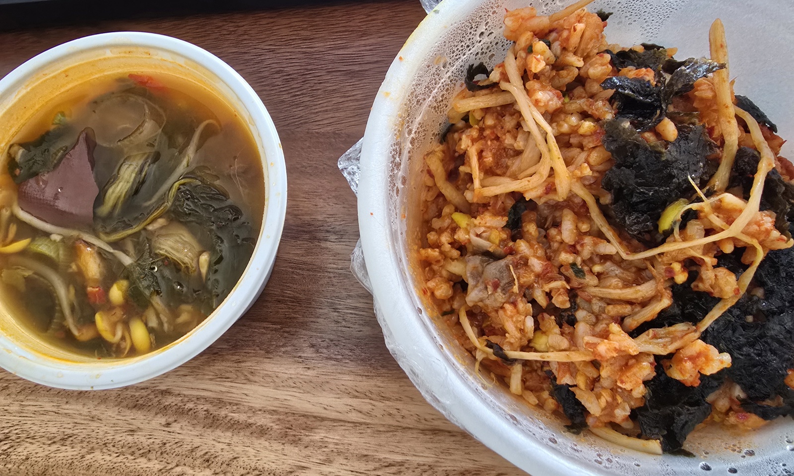 다음날 아구찜볶음밥 남은거랑 선지해장국(족발집에서 받은거) 먹었다.