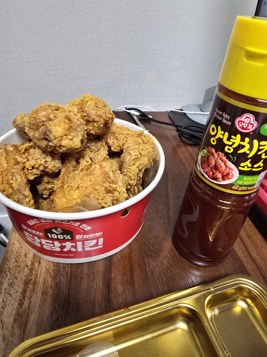 홈플러스가 망해서 당당치킨이 한동안 안팔았다는 얘기도 있었는데 사먹게 되었다.