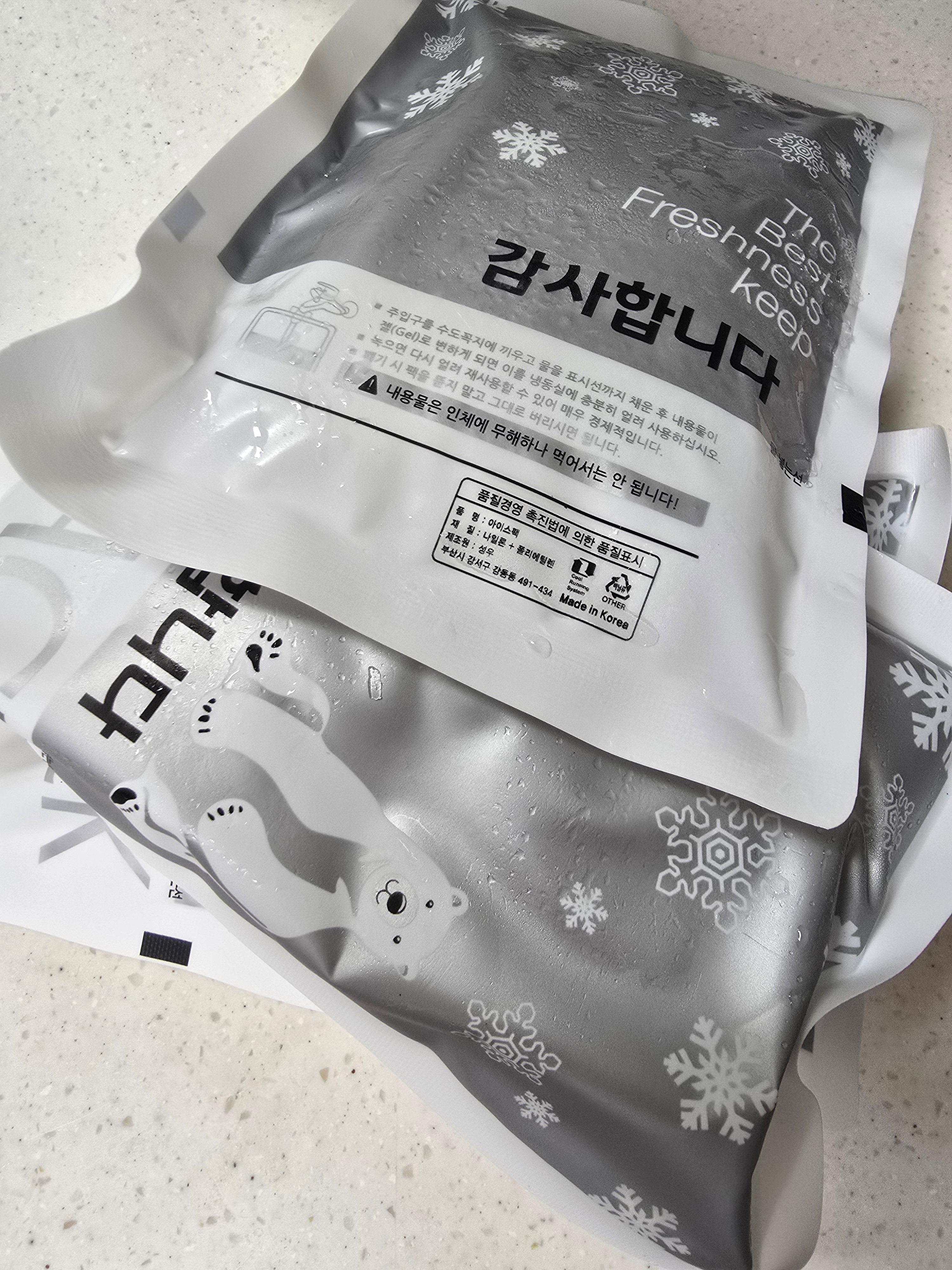 저렇게 얼음팩이 세개나 같이와서 냉동상태로 잘왔다.
