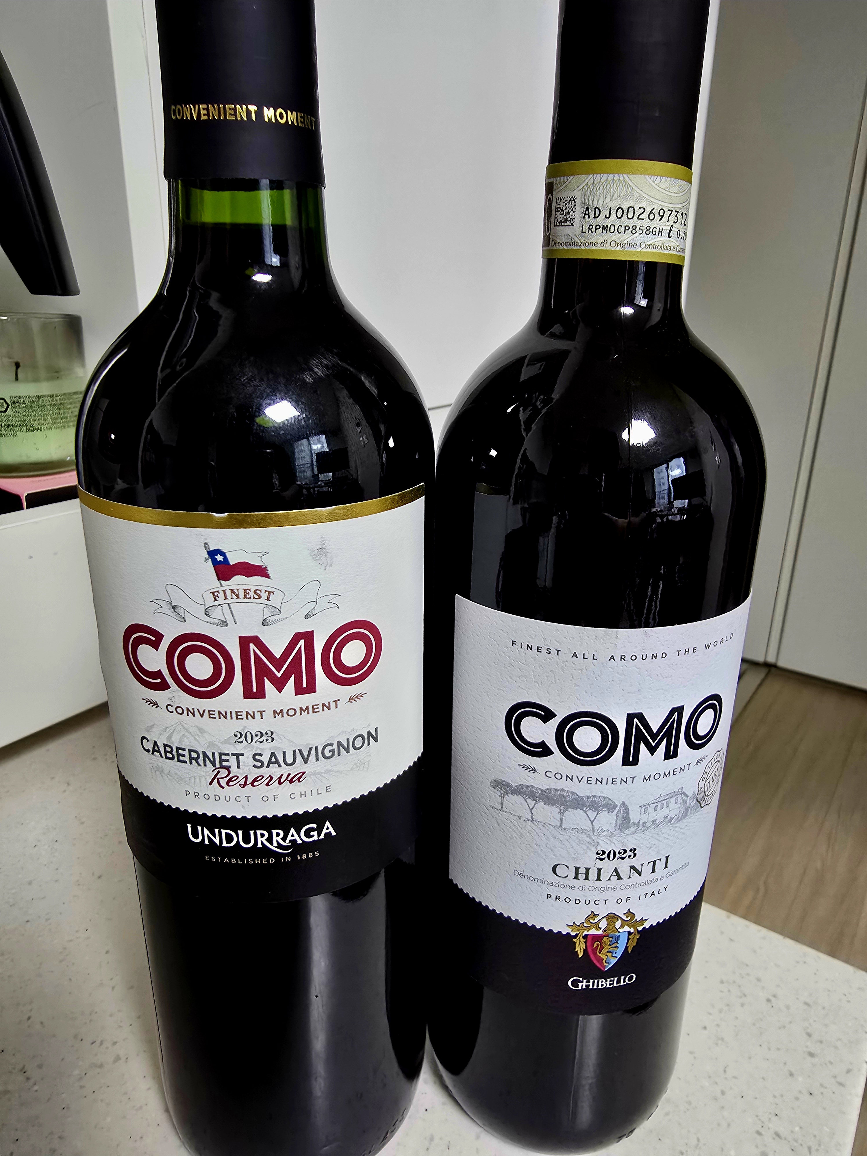 와인 2병. 전부 이마트24에서 샀고 como 병당 1만원이였고 2병사면 1천원 각각할인이였다.